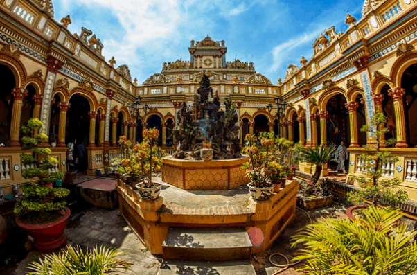 Du lịch Tiền Giang, bạn nhất định không nên bỏ qua chùa Vĩnh Tràng – ngôi chùa lớn nhất Tiền Giang. Ngôi chùa được xây dựng đầu thế kỷ 19 với sự kết hợp giữa kiến trúc phương Đông và Tây hài hòa trong từng đường nét chạm khắc.