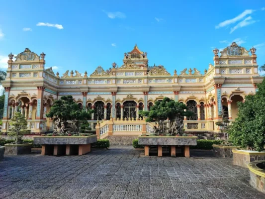 Chùa Vĩnh Tràng là một ngôi chùa cổ kính, có kiến trúc độc đáo kết hợp giữa phong cách Á – Âu. Ngôi chùa được xây dựng vào đầu thế kỷ 19 và là một trong những ngôi chùa lớn và nổi tiếng nhất miền Tây. Du khách đến đây không chỉ để cầu nguyện mà còn để chiêm ngưỡng những tác phẩm nghệ thuật điêu khắc tinh xảo.
